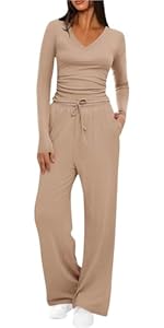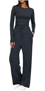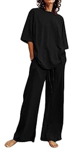 Women 2 Piece Set Outfit Summer Casual Tracksuit Short Sleeve Crop Tops and Drawstring High Elastic Waisted Wide Leg Pants Tracksuit Yoga Joggers Suit Lounge Wear Full Sets